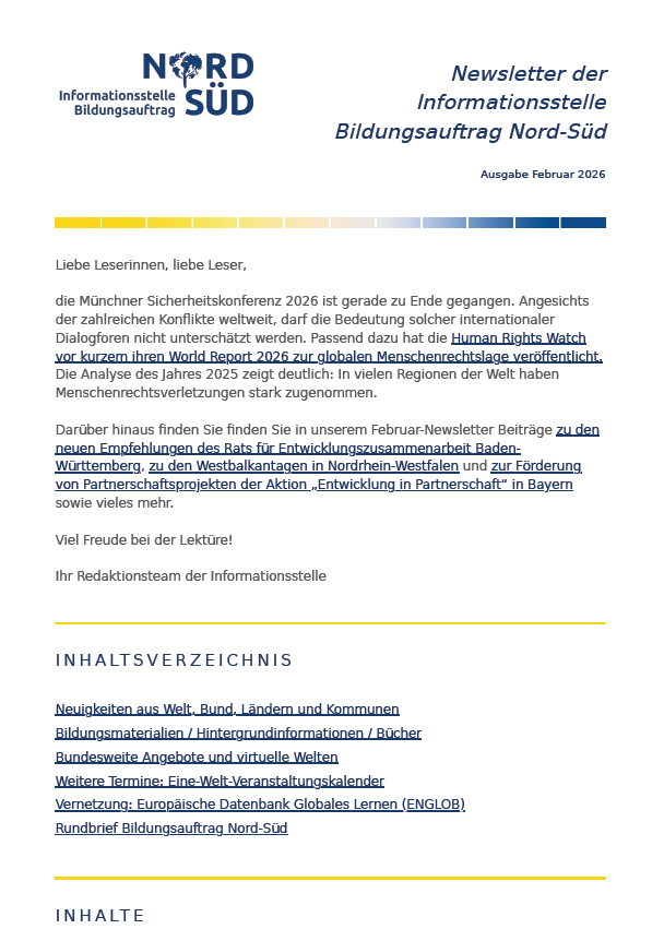 Darüber hinaus finden Sie finden Sie in unserem Februar-Newsletter Beiträge zu den