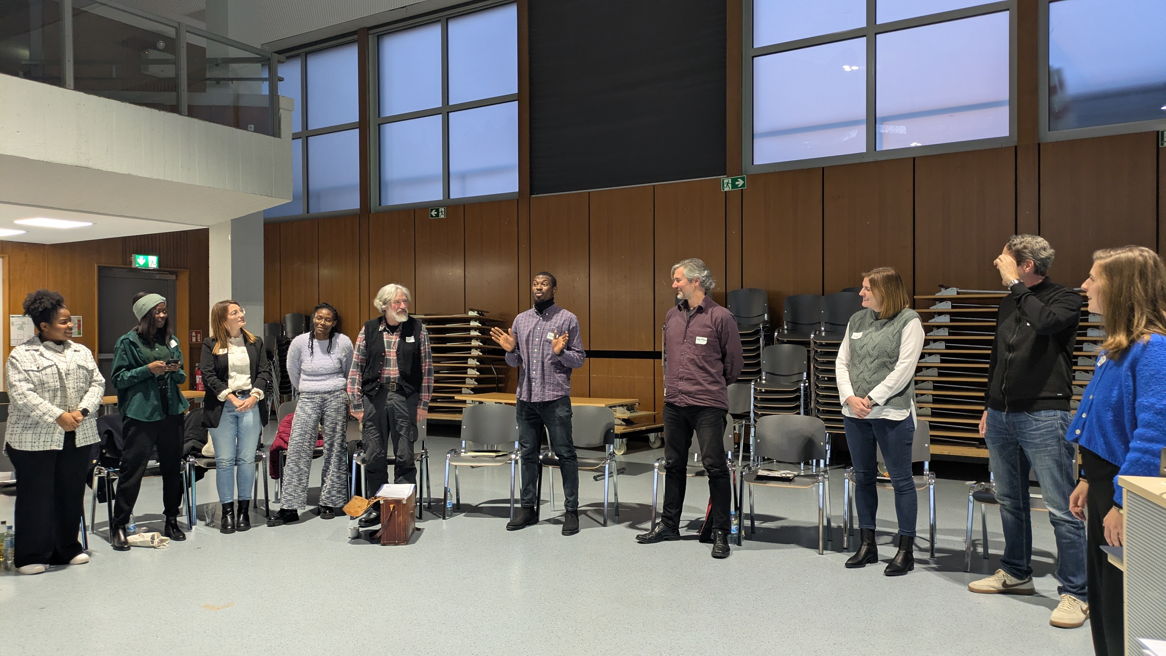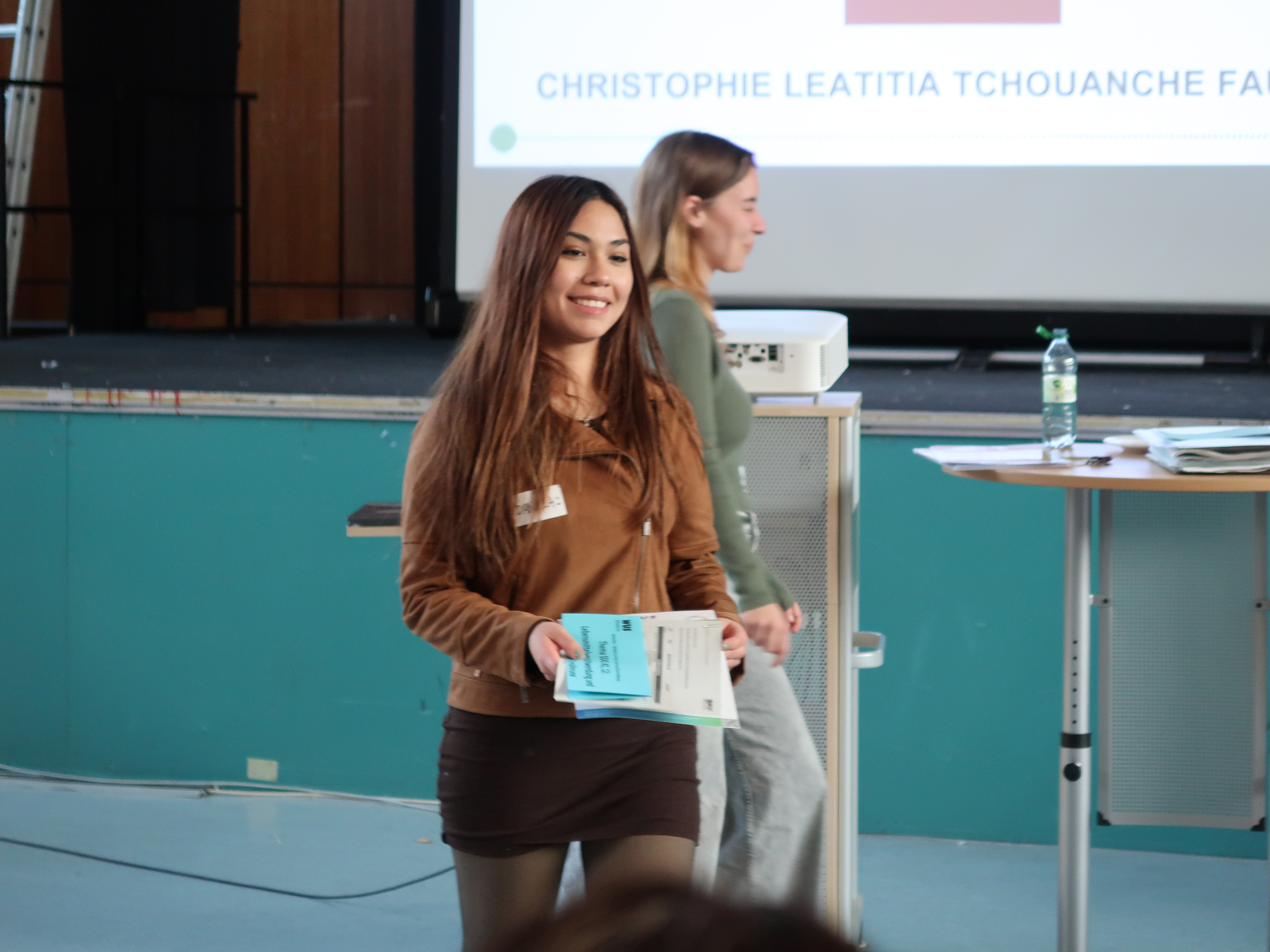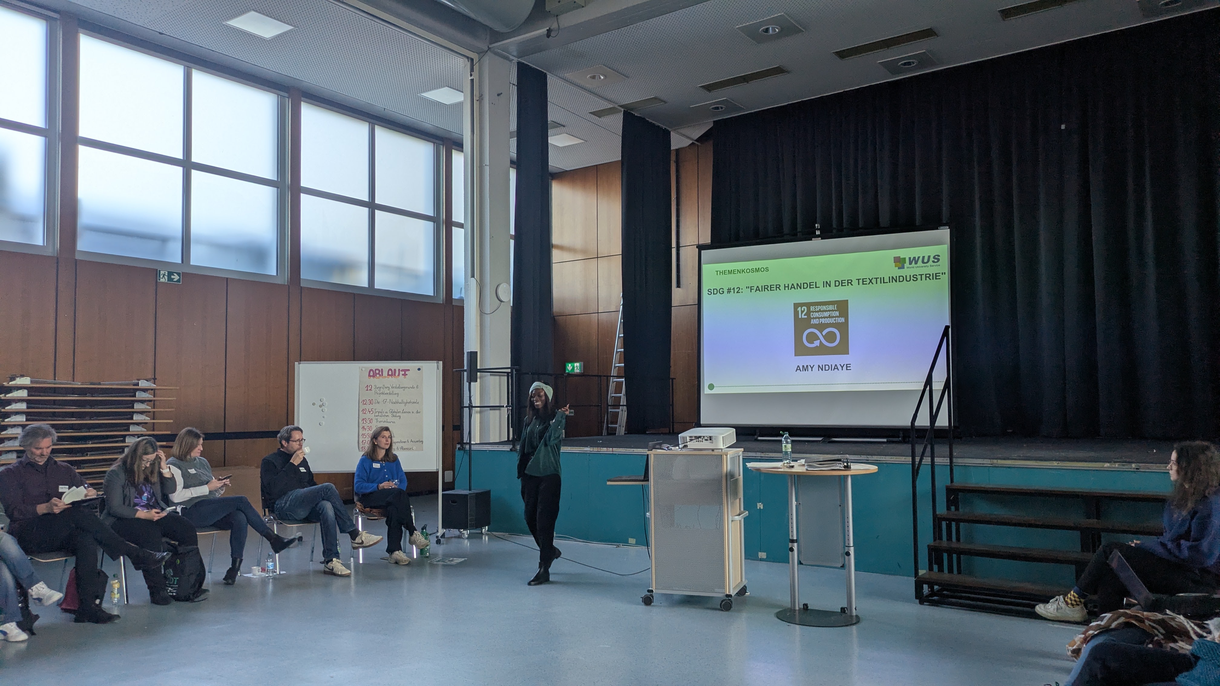 Lehrkräftefortbildung in Rheinland-Pfalz zu Globalem Lernen und Bildung für nachhaltige Entwicklung (BNE) für berufliche Schulen im WUS-Projekt „Grenzenlos – Globales Lernen in der beruflichen Bildung“.Wiesbaden/Trier, 27.11.2025. Ganz im Sinne des Vorsatzes „Gemeinsam für Nachhaltige und globale Vernetzung“ lud das Projekt „Grenzenlos – globales Lernen in der beruflichen Bildung“ zum Kooperationstag in Trier ein. Die durch das Pädagogische Landesinstitut Rheinland-Pfalz akkreditierte Fortbildung richtete sich an Lehrkräfte beruflicher Schulen in Rheinland-Pfalz, sowie an internationale Studierende aus Afrika, Asien und Lateinamerika, die an rheinland-pfälzischen Hochschulen studieren. Insgesamt kamen 15 Studierende und sieben Lehrkräfte in der Aula der BBS Wirtschaft Trier zusammen um neue Lehrkooperationen zu planen. Die BBS Wirtschaft Trier ist 2019 Grenzenlos-Schule und stellte durch die engagierten Grenzenlos- Lehrkräfte Nina Borg und Walter Gugel die Räumlichkeiten freundlicherweise zu Verfügung.