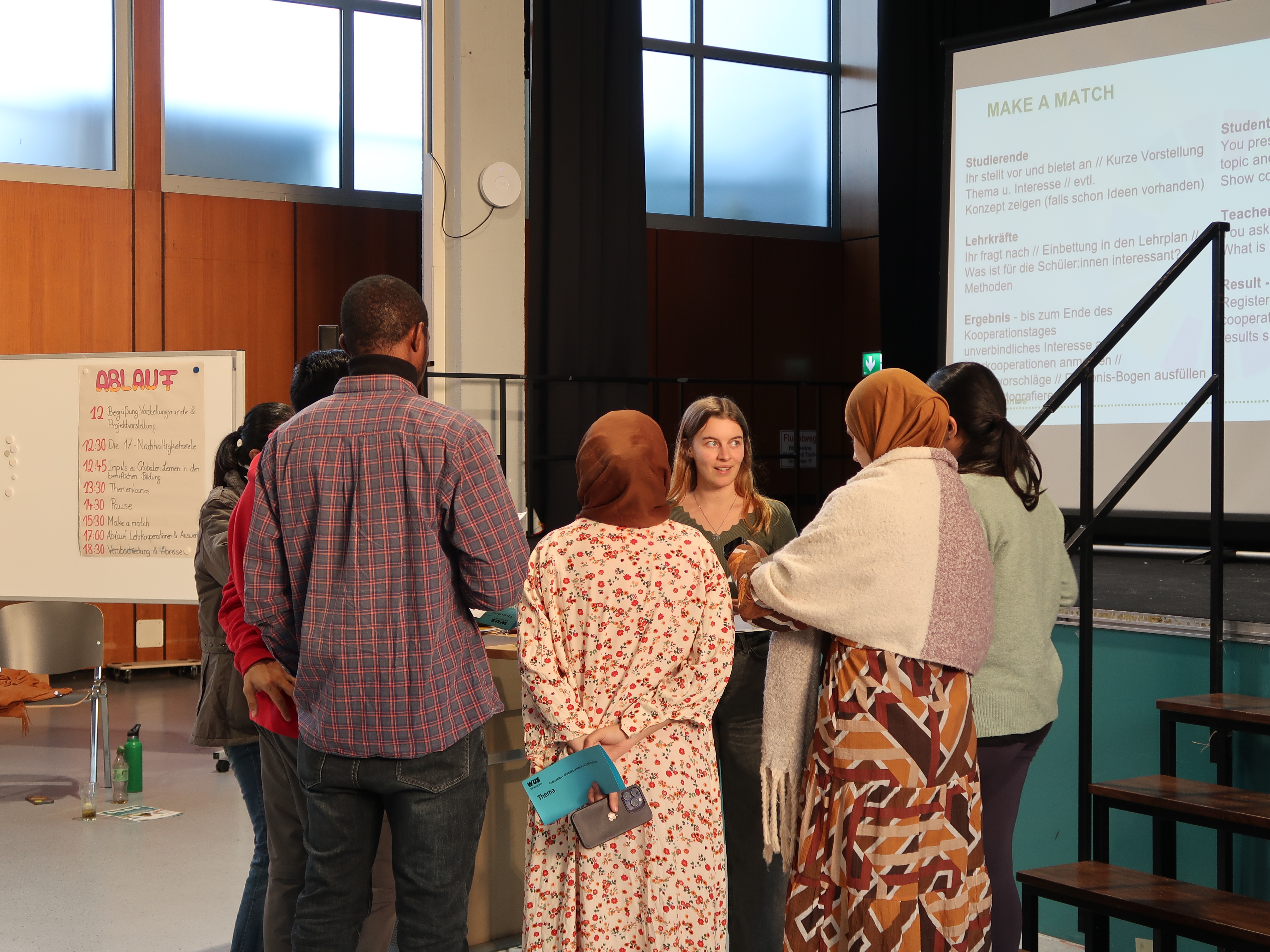 Der Kooperationstag bot Raum für Austausch, gegenseitige Inspiration und das gemeinsame Entwickeln neuer Lehrkooperationen. Im sogenannten „Themenkosmos“ präsentierten Grenzenlos-Aktive kurz ihre selbst entwickelten Themen zu den 17 Nachhaltigkeitszielen/SDGs. Die Studierenden bedienten dabei Themen von „Fairem Handel in der Textilindustrie“ bis hin zu „Nachhaltiger Stadtplanung“ und zeigten praxisnah, wie globale Zusammenhänge im Unterricht an beruflichen Schulen integriert werden können. Im anschließenden Programmpunkt „Make a match“ bekamen potenzielle Kooperationen Hand und Fuß: Lehrkräfte und Studierende vereinbarten B2B, wie zukünftige Lehrkooperationen gestaltet und konkret umgesetzt werden können.