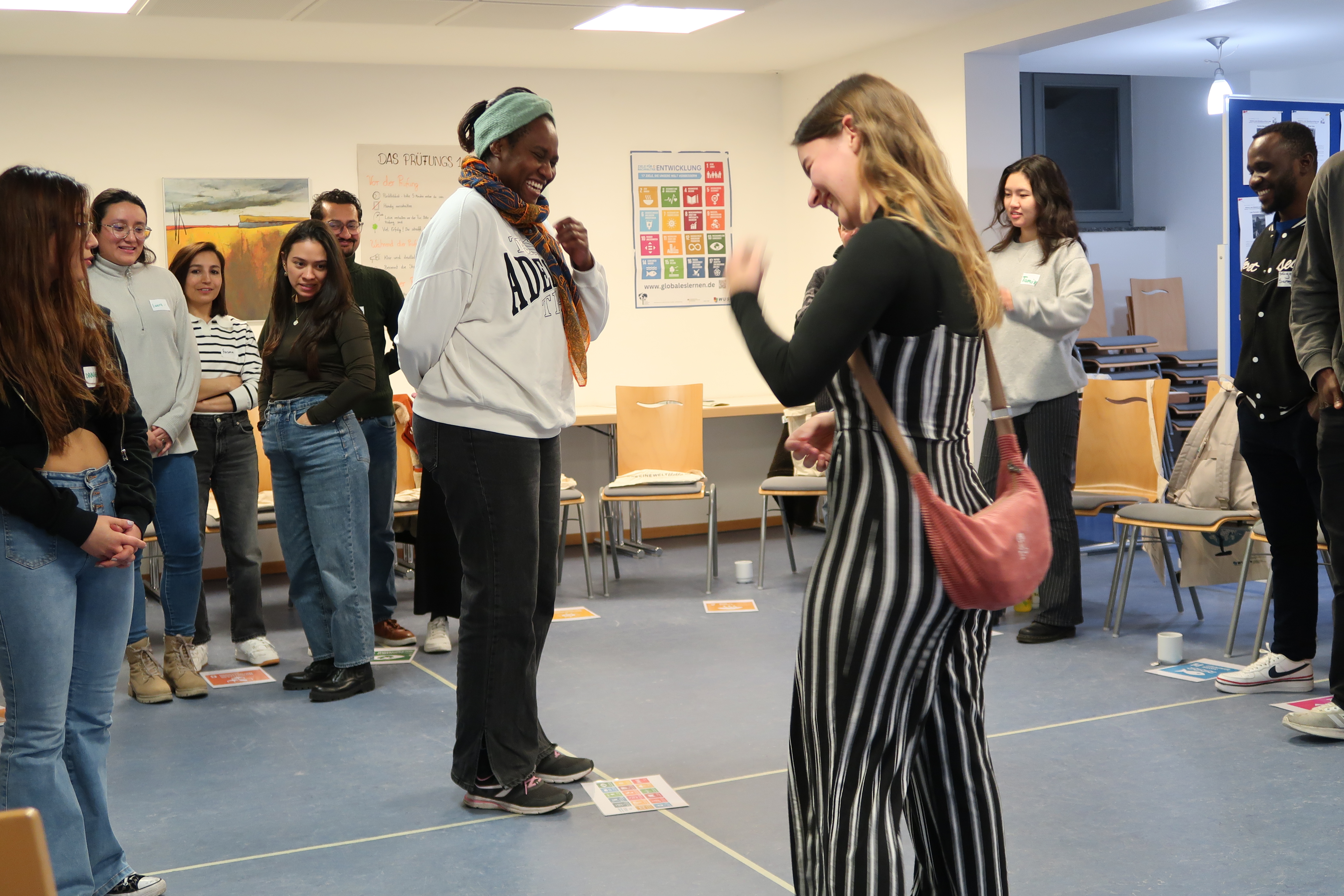 Eine Jury aus Mitarbeitenden von Ministerien und Institutionen der Lehrkräfteaus- und fortbildung prüfte Studierende aus Afrika, Asien und Lateinamerika im Rahmen des WUS-Projekts „Grenzenlos – Globales Lernen in der beruflichen Bildung“.