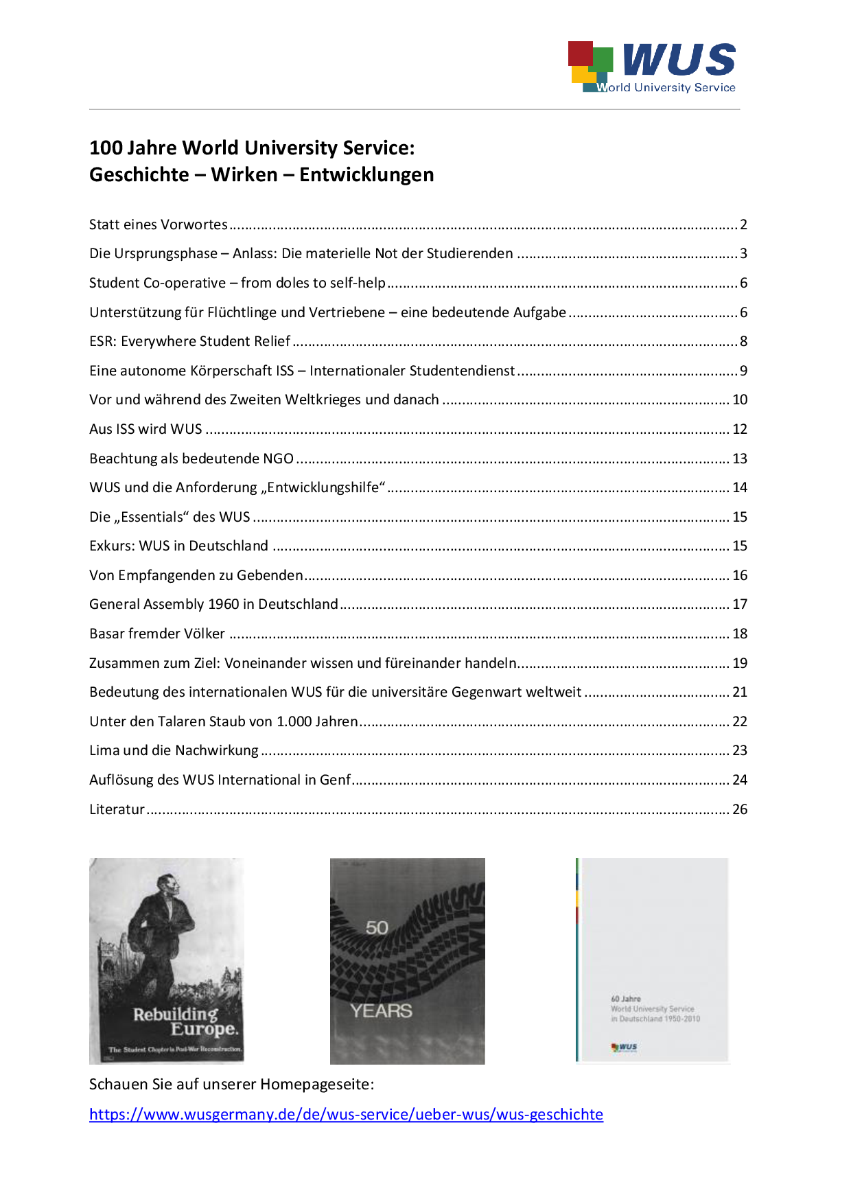 Seit September 2021 existiert die Homepageseite https://wus.org.uk/. Diese Website ist ein Einstieg in die Arbeit von WUS, in die 100jährige Vergangenheit und Gegenwart. Hier finden Sie viele interessante Informationen zu den Aktivitäten der weltweit tätigen WUS-Komitees.